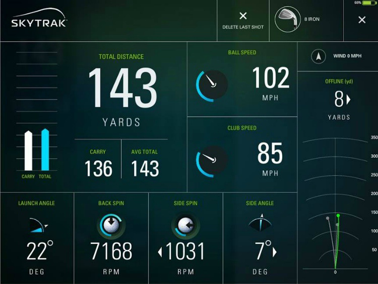 SkyTrak allows users to hit balls with their own golf clubs into a net and it accurately captures thousands of data points to offer a realistic simulation of practice or play. The system gives users instant feedback for each shot to provide them with objective insight into their skill level and progress. Golfers get a range of helpful data screens that show them their shot history, performance by the club, and other information that reflects their actual performance and helps them improve their game.